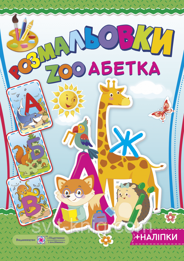 Розмальовка з наліпками. Зооабетка (англійська мова).